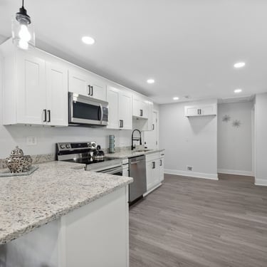 Outdated finishes were removed, surfaces prepared, and durable, stylish materials installed. Kitchens were reconfigured for better workflow, bathrooms modernized, and flooring and paint unified the interior.